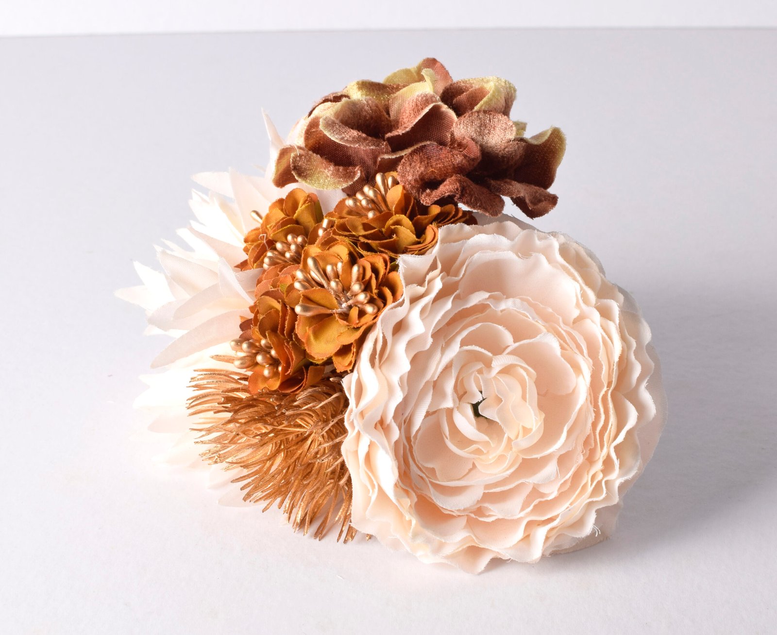 Ramillete flores crema, doradas y marrones